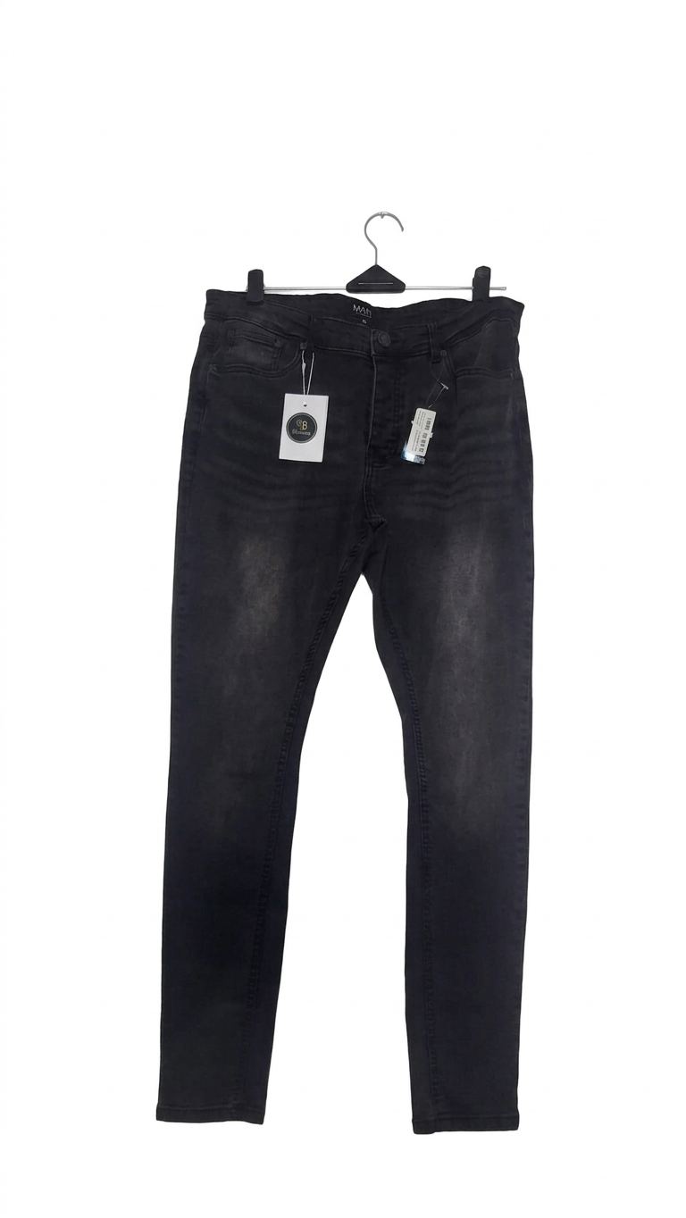 Upgrade your daily rotations with a dose of premium, versatile style. These MAN Official slim-fit jeans are crafted from durable, comfortable stretch-denim, making them perfect for all-day wear. They feature a sophisticated faded black wash with natural-looking whiskering and distressed detailing across the upper thighs, adding character and a vintage edge to the dark base.