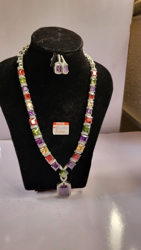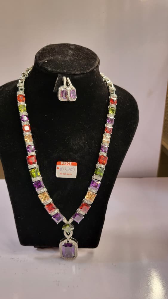 Elegant Tennis Earring and Necklace Set featuring a classic, sparkling design for a sophisticated look. Perfect for parties, weddings, or special occasions.
