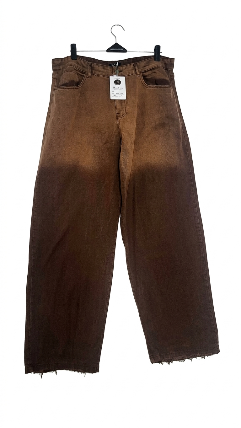 Upgrade your daily rotations with a touch of rugged, vintage style. These premium wide-leg trousers feature a unique, authentic weathered finish that fades from a rich, light rust-brown at the waist to a deep, dark brown at the leg. Designed with a clean-cut, voluminous wide-leg silhouette, they provide both a modern profile and all-day comfort. The raw, distressed hems add an essential touch of undone, contemporary edge. Complete with classic 5-pocket styling and prominent contrast stitching, these pants are the perfect blend of utilitarian function and on-trend, streetwear-ready aesthetics. These trousers are built to make a bold statement with effortlessly cool ease.