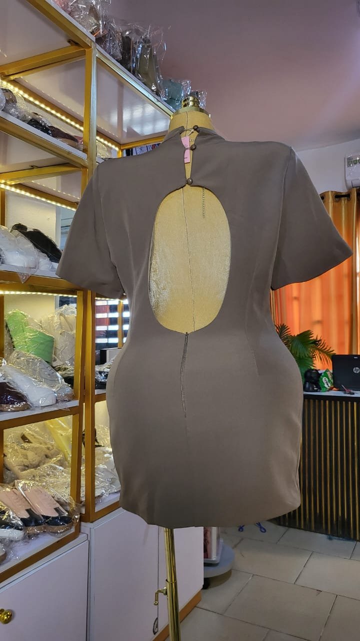 Elegant Woven Cinched Backless Mini Dress designed to give a flattering and stylish look. Features a cinched waist for a perfect fit and a trendy backless design, ideal for parties, outings, and special occasions.